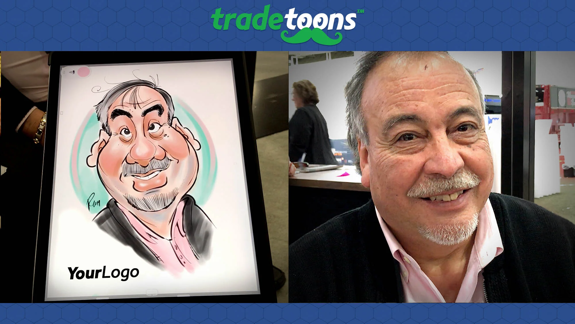 TradeToons™ specializes in sketching live digital caricatures at trade shows and corporate events nationwide. This high-tech art form provides a practical entertainment solution for companies looking to engage clients and build traffic. Each cartoon portrait is drawn on a tablet device on site by a professional caricature artist, displayed on a large screen to draw attention, and printed with your company logo.